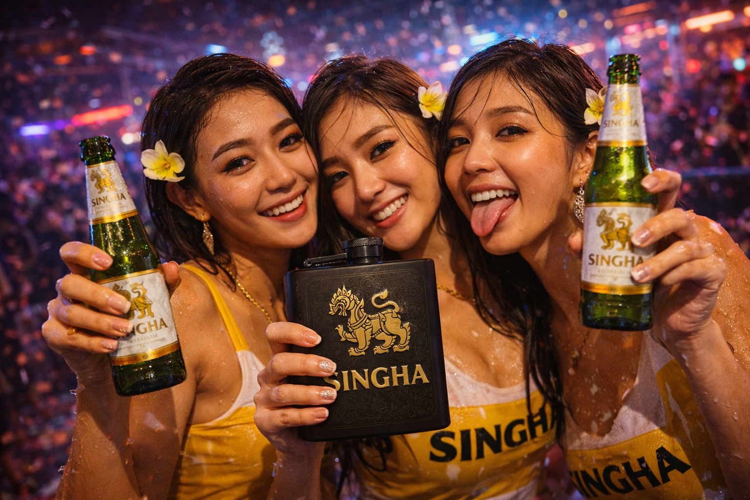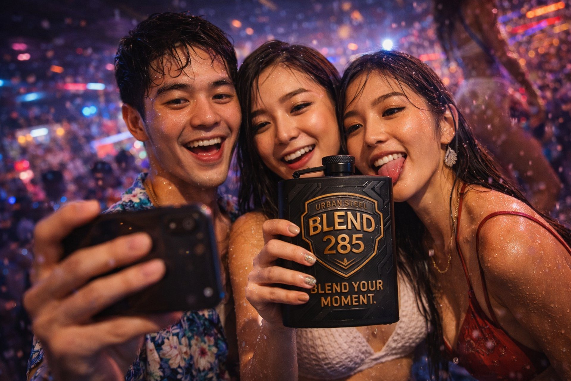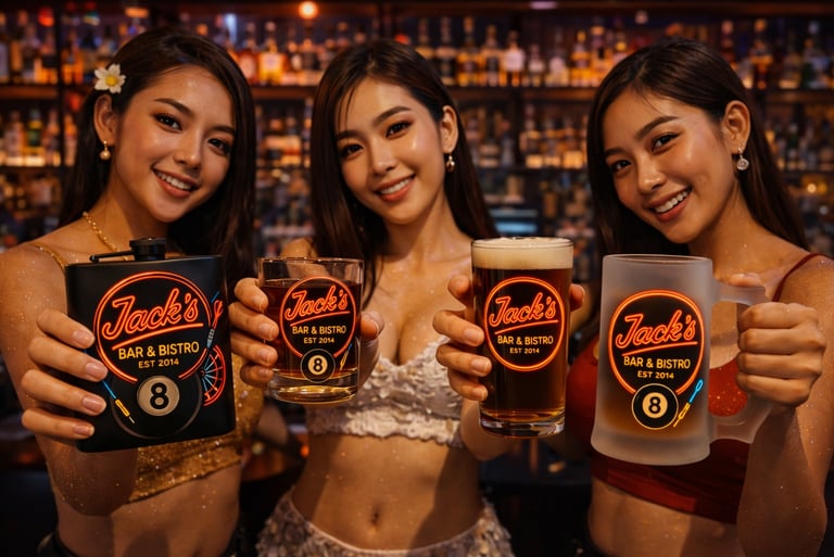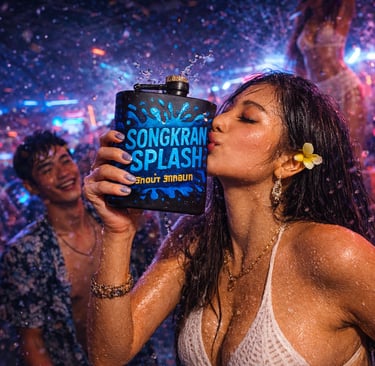A branded flask pack is not casual merchandise. It is a controlled memory anchor. It captures the emotional spike of the night and turns it into something guests can hold, photograph, and keep. Whether aligned to a Hong Thong edition, a Mekhong heritage piece, a Singha icon release, a Songkran Splash drop, a Loy Krathong lights edition, or a venue-branded neon design, the flask becomes proof of the experience. Guests are not buying steel. They are buying the night.